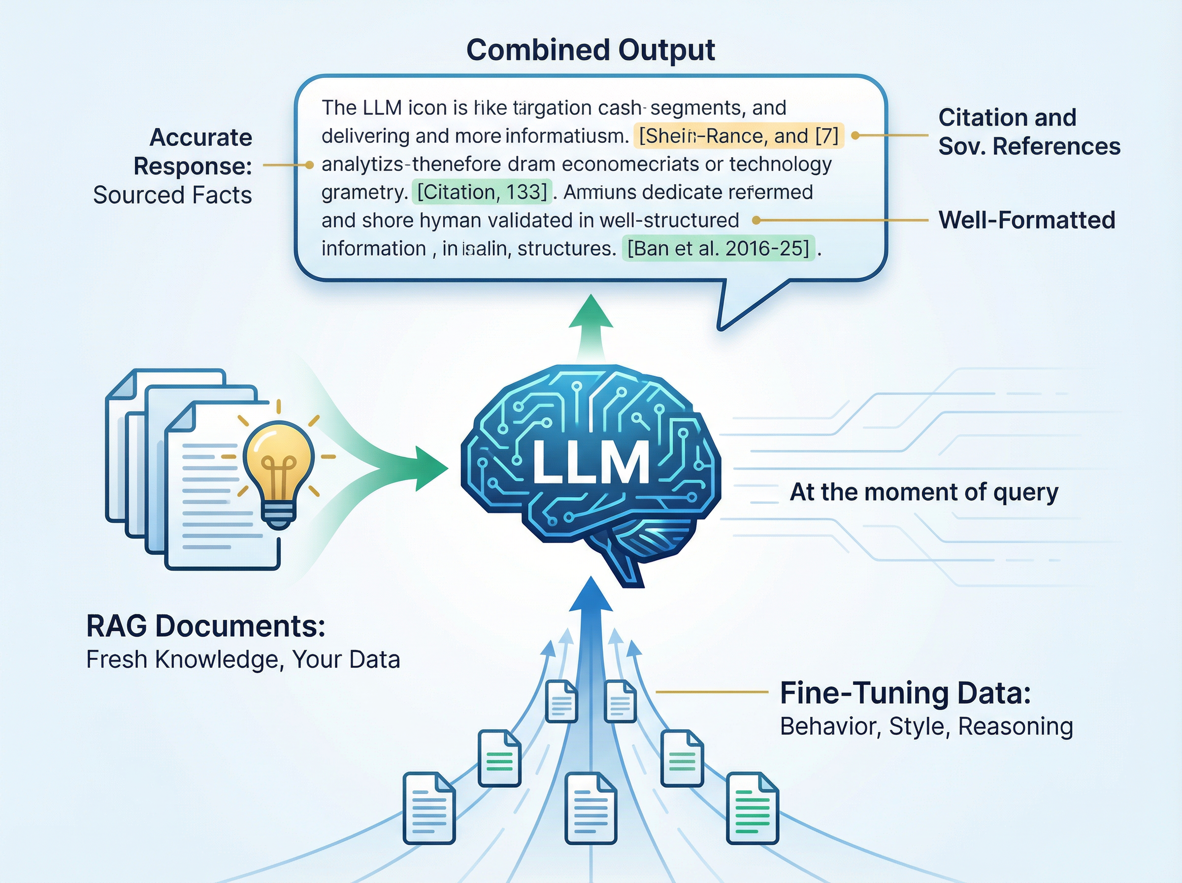 Fine-tuning teaches the model how to behave. RAG gives it the knowledge to be accurate. These aren't competing approaches. They're complementary.